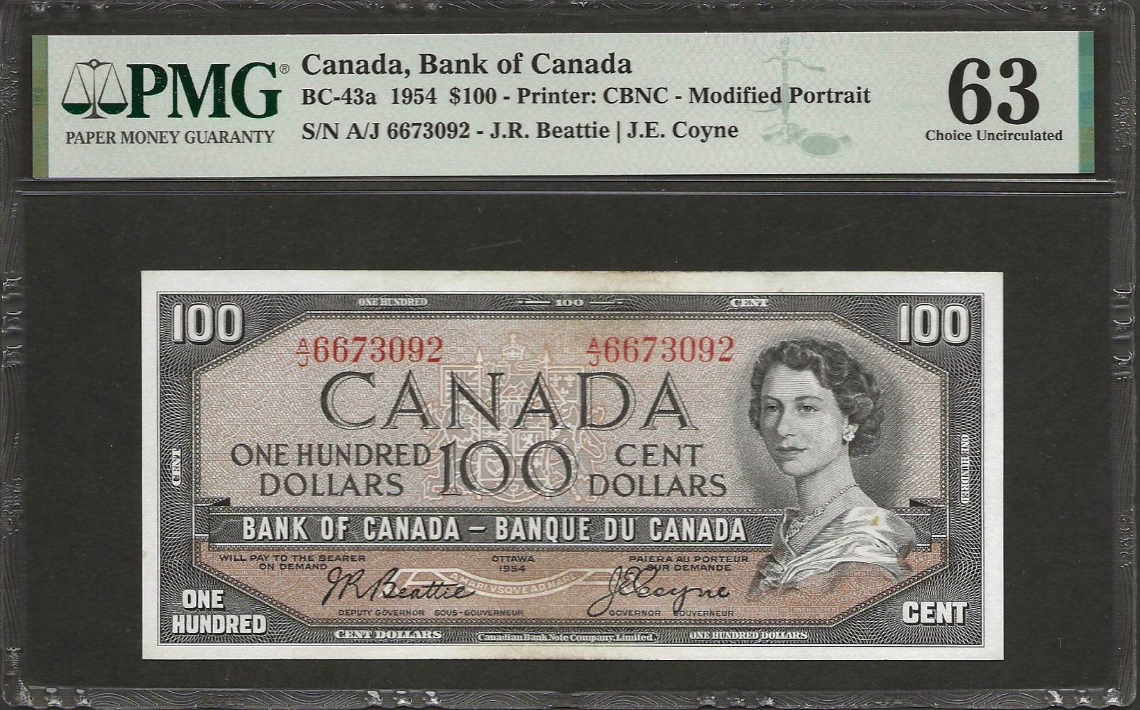 Canada BC-43a 1954 $100 CHUNC63 PMG