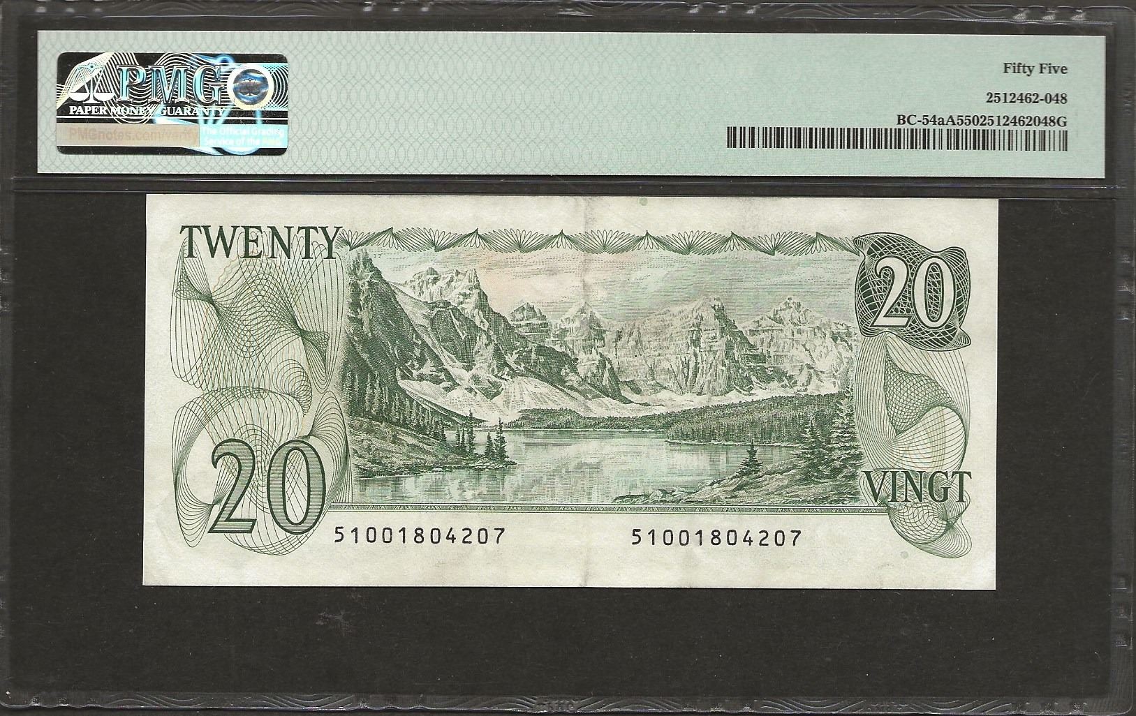 Canada BC-54aA 1979 $20 510 Replacement AU55 PMG. 510 numbered replacement issue. A light centre fold is the only hint of circulation found on this example.