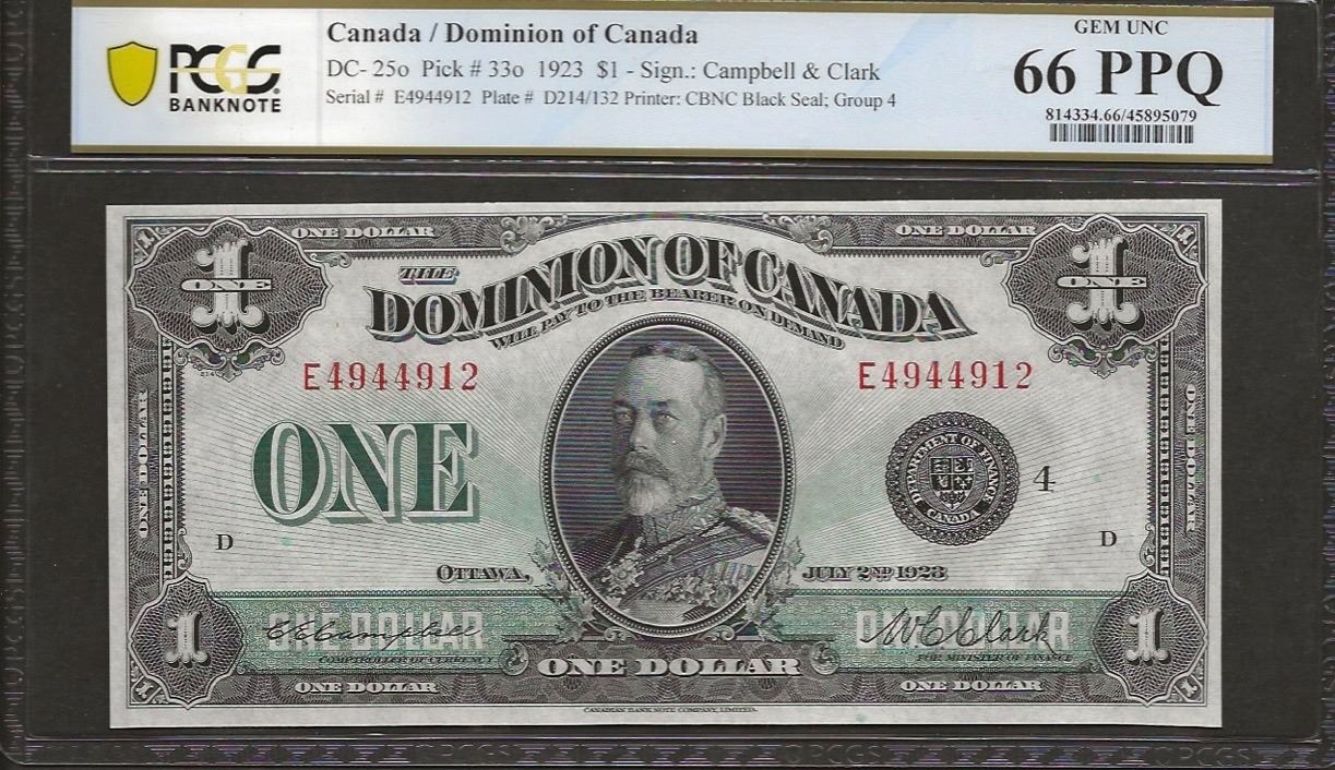 Canada DC-25o 1923 $1 GEM66 PPQ PCGS