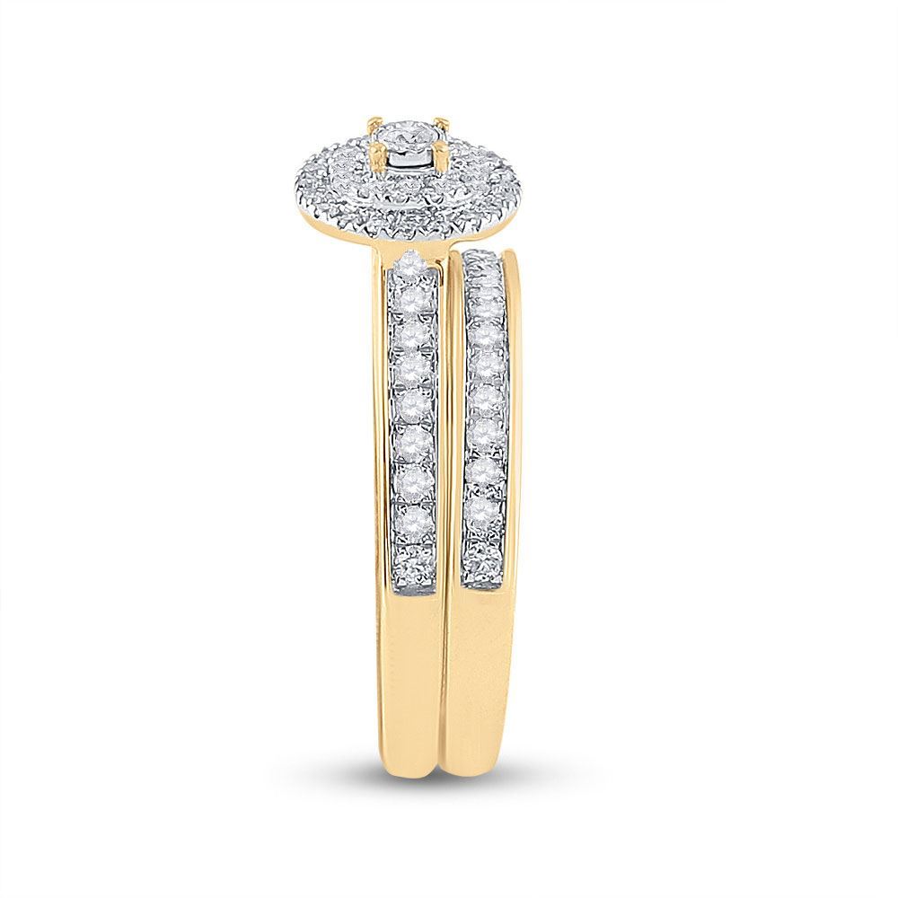10kt Yellow Gold Round Diamond Halo Bridal Wedding Ring Band Set 1/2 Cttw